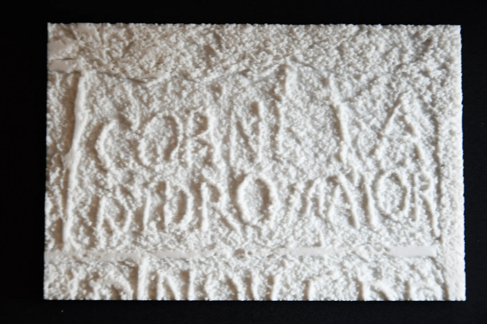 Además de dicho registro fotográfico y ante la imposibilidad de realizar moldes de las inscripciones, se emplearán nuevas tecnologías, como impresiones en 3D, para obtener reproducciones que exalten su volumen y textura. Partiendo de la herramienta 3D, se aplicará la técnica de litofanía1 (actualmente en desuso). Su nombre proviene del griego “lithos” piedra y “phaino” ser visto o transparentar. Esta técnica esta en consonancia con uno de los objetivos principales de este trabajo: dar luz y transparencia a esas piedras que han permanecido en penumbra. De esta forma se logra darles luz, hacerlas visibles y que perduren en el tiempo.